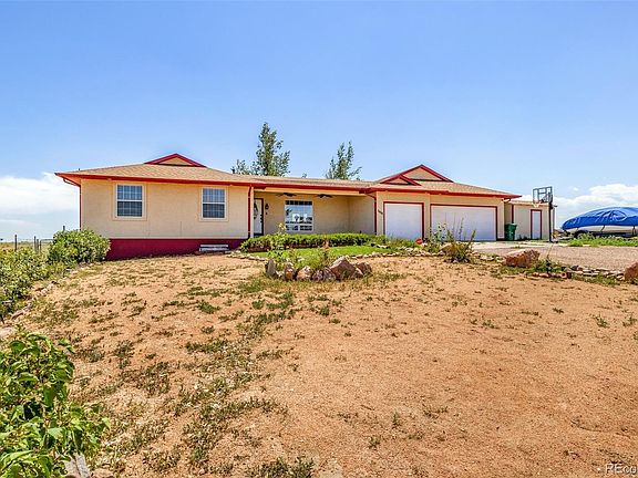 Don't miss out on this ranch-style home situated on a 2-acre horse property in Pueblo West. Breathtaking mountain views enhance the appeal of this property. Enjoy the comforts of this well-appointed 5 bed 3 Bath home featuring solar energy system. The gourmet kitchen boasts elegant granite countertops, a gas stove, and ample pantry space for all your culinary needs. Retreat to the inviting primary suite, complete with a walk-in closet and a spa-like shower. The finished basement provides versatility with extra rooms and a storage area. The home is also equipped with a humidifier. You will appreciate the oversized 3-car garage, which includes a dedicated work area and cabinets for organization. The landscaped property features drip system, ensuring easy maintenance and lush surroundings. The equestrian facilities include a barn with 3 open stalls, a tack room, and a hay storage area. The corral is equipped with a water hydrant and electric outlet for your electric water trough to keep water from freezing in the winter for added convenience. Additionally, there is a a dog run, 20x10 shed with electricity and a 6x10 shed, providing ample storage space for outdoor equipment. Other notable features of this home include built-in speakers in the family room, under cabinet lighting in the kitchen, and a convenient lazy Susan. Embrace a greener future and enjoy the benefits of renewable energy. Easy access to I-25 for commuting!