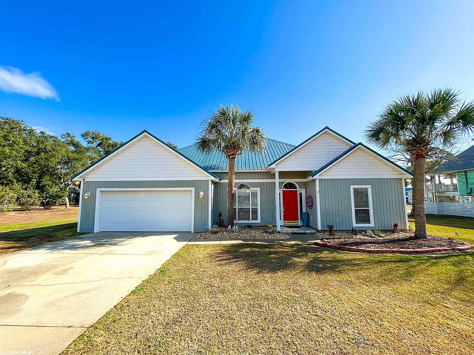 From the moment you walk in the door, this lagoon view home beckons you to relax and unwind. This home has 4 bedrooms, 2 baths, split floorpan all on one level. Spacious private master bedroom with oversized shower, soaking tub, and roomy walk in closet. Perfect place to work from home or sleep in on weekends. Large laundry room and separate pantry are just a few of the thoughtful details. New paint throughout. Huge eat-in kitchen was updated in 2020. Both baths renovated in 2019. The large screened porch is the perfect place to sit for morning coffee or an afternoon cocktail while you enjoy the afternoon breezes and lagoon views. New HVAC in 2019 with a 10 year warranty. Home is energy efficient and easy to maintain. New metal roof in 2021. New grinder station in 2022. Gulf Shores School District. Quiet neighborhood just minutes from beaches, shopping, and restaurants. NO HOA.