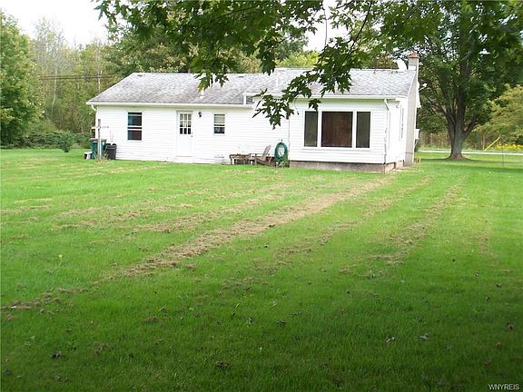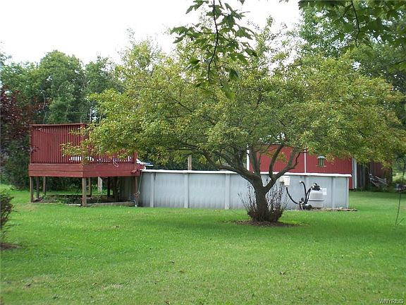 Adorable 2/3 bedroom home with 1.5 baths on almost 2 acres. Living Rm has a pellet stove for those cozy evenings, 1st floor laundry (12 x 10) and half bath have their own exterior door for easy "in and out" to use the facility. The 28 ft round above ground pool has it's own deck, the 30 X 24 barn has power, garage doors and a work shop. Back sunroom roof 2018, arch. house roof approx. 15 years. HWT approx. 8 yrs,