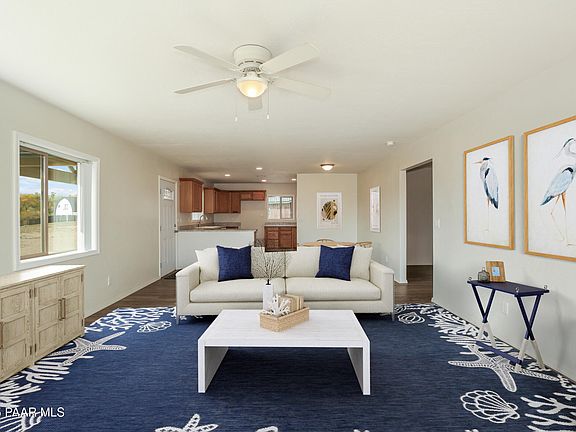 Welcome home to this beautifully remodeled 1,360 sq ft, 2-bedroom, 2-bath property with an additional 200 sq ft bonus room perfect for a third bedroom, office, or den. Sitting on approximately 2.68 private acres with amazing views, this home offers space, privacy, and modern comfort all while being less than 10 minutes from SR-69 yet feeling like true country living. With no HOA and owner-carry terms available for up to 5 years, this property is rare and highly desirable.Completely updated in 2021, the home features all-new plumbing, updated electrical with a 200-amp service panel and EMP protection, new siding, fresh interior and exterior paint, a metal roof, gutters, and a large bonus room with a walk-in pantry. Inside, the kitchen was fully redone with new cabinets, counters, a farm sink, and appliances. Low-E windows, new doors, laminate flooring, upgraded lighting, fixtures, and a thermostat-controlled attic fan enhance efficiency and comfort. Both bathrooms were remodeled, and the home also includes a newer heating system, hot water heater, septic risers, and new well equipment (2025).This home is move-in ready and meticulously improved, with plenty of room to build a shop and enjoy peaceful acreage living with beautiful views.Call us today for a private showing!