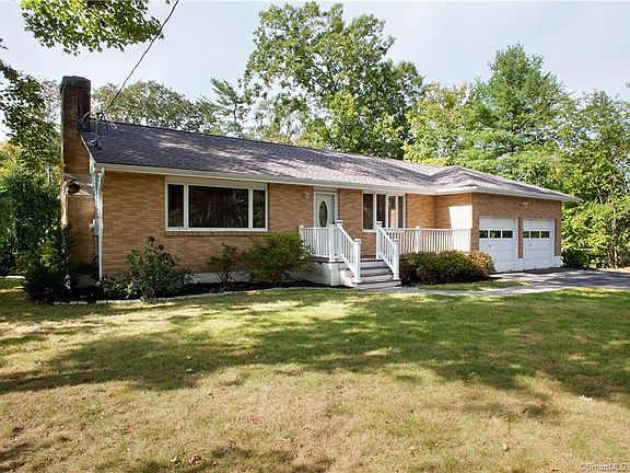 Beautiful, well maintained ranch in desirable Mt. Carmel neighborhood. 1+ acre open, level lot surrounded by trees. Bright, eat in kitchen with island and wet bar has access to the large 30'x20' deck. Main level MBR suite has 10' ceilings, full bath with whirlpool tub, walk in closet and access to deck. Laundry on main level. New split A/C system, new hot water heater, newer roof. Lower level has potential for in law apartment, finished with full bath and rear outside access. Outbuilding in the rear features a 2 bay garage with heat, hot water, electricity, compressed air system and radiant heat floors, high ceilings, and unfinished upper level as well as 2 other rooms for storage (garage and upper level is approx 1,900 sq feet total. A perfect place to safely store your equipment, toys or work on projects. Walking distance to Farmington Canal, and Sleeping Giant State Park. MUST SEE
