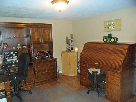 All brick home with a full basement and a heated shop with covered area for a camper. Mature trees on 1 acre lot.