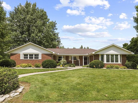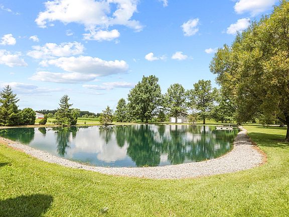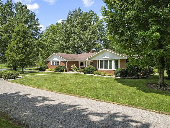 Welcome to tranquility!! This inviting 3 bed 2.5 bath sprawling all brick ranch home that's situated on a well landscaped park like setting 4.99 acres with a 48'x40'pole barn and stocked pond is a must see! Just a few of the fabulous features include; a spacious great room with a wall of windows overlooking the stunning lot, a welcoming family room with a fireplace and maple hardwood flooring overlooking the pond and opens to a 3 season room & patio, which is perfect for entertaining or to just sit back and relax, a galley kitchen with stainless steel appliances, Corian countertops, and luxury grade mission style cherry cabinets, enough garage/barn space for 8 cars, all updated bathrooms, a large owner's suite, and so much more!