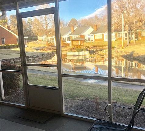Highly sought after 55+ neighborhood! This 2BR unit has had only one owner and has been well maintained. H/W floors in foyer/entry, tile in baths, vaulted ceilings in LR, fireplace w/ gas logs, great screened porch facing the community "lake". Community is conveniently located ... close to shopping, restaurants, grocery stores and I 77. Very peaceful and quiet!