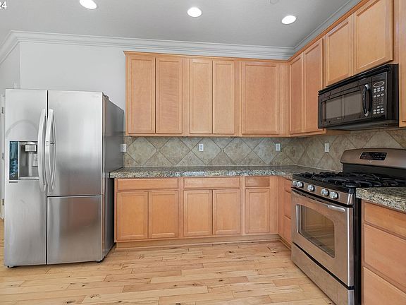 Your new home is ready for you! Situated in a prime location on a quiet dead end street, this beautiful setting overlooks a Greenspace and pond where you can relax and watch the wildlife from your private deck. Gourmet kitchen features eating bar, granite counters, SS appliances and a pantry. Engineered hardwood on main level, living room has a fireplace for cozy evenings, primary bedroom also has a fireplace, attached bath with double sinks, soaking tub and a huge walk-in closet. Sprinkler system throughout the house. All window blinds are included. Quiet and peaceful neighborhood yet still convenient to shopping, Nike, Intel and more!