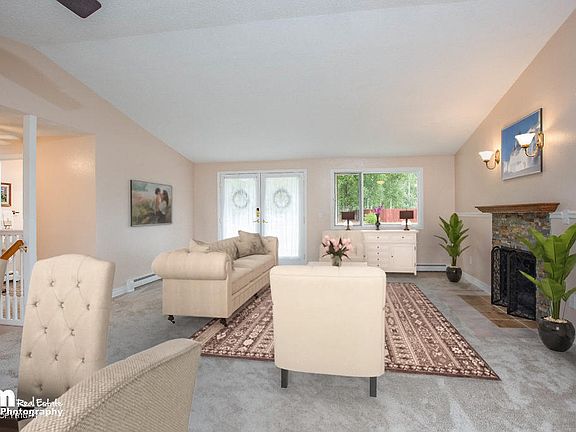 Tastefully updated hillside ranch just minutes from DT Anchorage! This lovely 5 bed/2.5 ba home boasts mtn views, new carpet & paint, cath ceils, newer baths & a large south facing deck! Two spacious living areas w/ bedrms on both lvls make this home perfect for a large family or entertaining guests! Heated 2-car garage & last but not least, the big flat lot is on public utilities!