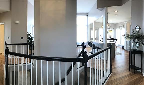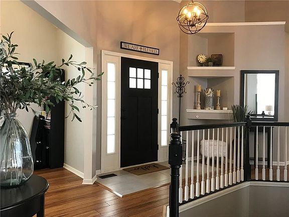Amazing updates completed! Reverse 1.5 story, 4 bedrooms, 2.5 baths, 3 fireplaces, and 2 car attached garage in Country Club, Savannah School District. Open entry, formal dining (or office), fabulous all NEW kitchen with appliances, quartz counters, island, and dining open to living room w/ full view windows to soaring ceiling for natural light. Enlarged master bedroom and great ensuite with dual bowl vanity, tub, shower, and walk-in closet. Bamboo wood flooring. Walk-out, lower level family room & 3 more bedrooms.