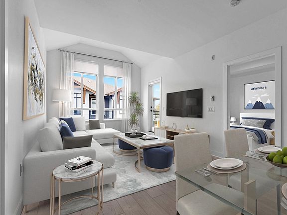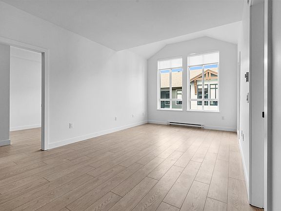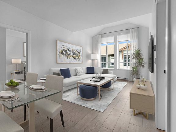 BRAND NEW, MODERN, WEST COAST INSPIRED, 2 bed, 2 bath, 832 sqft, top floor unit at the Atrium in Langley City. This move-in ready, open floor plan features a kitchen with stainless steel appliances, including gas range, quartz counter, white cabinets & island seating! Primary bedroom has a walk-in closet & large ensuite with double sinks. Second bedroom with walk-through closet to main bath. Balcony off the living room overlooks the courtyard. Engineered wide plank laminate floors, white woodwork, black hardware throughout. Amenity spaces include entertainment area with kitchen, gym, meeting rooms and playground. 2 parking, 1 storage locker, pets welcome. Close to restaurants, shopping, parks, schools and future skytrain station.