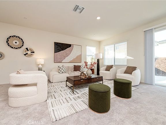 Gorgeous, nearly new construction master-planned community named Cambria in Riverside's desirable Highgrove / Spring Mountain Ranch area. This one-story singlefamily home offers modern living in a serene, thoughtfully designed community with 4 bedrooms, 2 bathrooms, and two car garage parking spaces. 2,035 living sf and 6,535 lot sf. Built by KB Home in 2022. Step inside to find an open floor plan bathed in natural light. The layout creates seamless flow between kitchen, dining, and living areas ideal for entertaining or family living. Builder's touches likely include modern finishes (quartz counters, stainless steel appliances, ample cabinetry). Each bedroom is well proportioned, with the master suite offering privacy and comfort. Other interior amenities likely include recessed lighting, a walkin pantry, and designated laundry space. Solar lease $110/month. Set on a generous lot, the property provides outdoor potential for gardening, landscaping, or recreation. The front yard is landscaped, and the home sits quietly on a residential street within a planned, walkable community. Residents enjoy nearby scenic views of the Riverside foothills, scenic walking trails, parks, Sandals Church, and connective walkways within the neighborhood. Nearby massive Spring Mountain Ranch Park with basketball court, sand volleyball, and BBQ and picnic areas. Closed to UC Riverside, VA Hospital and Loma Linda Medical School. Located within the Spring Mountain Ranch / Highgrove corridor, this home places you close to schools, shopping, freeway access (215 / 60 / 91 / 10), Riverside Metrolink station, and the amenities of Downtown Riverside. With its newer construction, efficient design, and ideal location, this home packs great value. Movein ready.