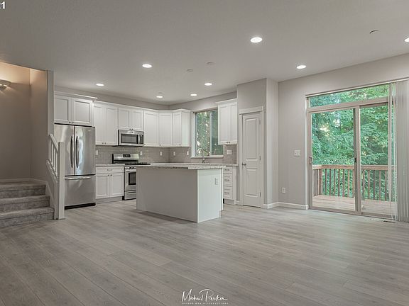 Fully remodeled home with brand new kitchen: cabinets, quartz counters. Stainless steel appliances. 5 burner gas range. New flooring: carpet and laminate wood floors, and vinyl. New paint: interior and exterior with new deck overlooking a beautiful public park and pond. Second story boasts a vaulted loft, large laundry room, and vaulted master suite. Double sinks in hall bath. Fire sprinklers. Located at the end of a quiet street. Sprinkler system in front yard. 5 minutes to the max station.