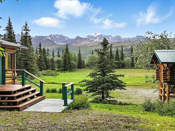 Sheep Mountain is a magical place. You are IN the mountains, not just looking at them, or driving to them. Here is a piece of Alaskan history; a single-owner home, built by hand and lovingly added on to over the years since it began as a homesteader's cabin in 1973. Now a fully-fledged on-grid comfortable home, with pride and love of ownership in every detail.The main home is on three levels, with an open, spacious lower level which houses the wood stove, Toyo, water heater and water conditioning system, bathroom, and a small office. This level opens out to lovely landscaping with a stone facade on the lower portion of the house. The middle level, access via a short flight of stairs which lead to a spectacular sunroom, was the original log home, before the foundation and lower level were added in the 1990s. There's a comfortable living room and kitchen, with plenty of windows and beautiful light. The primary bedroom is on the top level, accessed up the stairs from the living room. The sunroom is passively heated by the sun and is warm and toasty on all but the very coldest days of winter. Its wall of windows frame the spectacular view across the East Fork of the Matanuska River, up into the Chugach Mountains. The property is level and extremely usable, with 2 of the 10 acres already cleared in a lovely field, which holds the home at the northwest corner, looking out to the southwest for the best afternoon and evening light. The field is level with great sun exposure - perfect for animals or a garden, or MAYBE a Cub airstrip (pilot judgment dependent!) Next to the house is a shop and garage, with plenty of room for a truck and lots of toys and tools (photos coming soon). Down the driveway are two dry cabins: one is a lovely single room with a bed, sofa, stove for cooking and kitchen table. The other is the bunkhouse, with a woodstove and sleeping space for six. Both have simple sinks with a graywater drain system to drywells outside. The entire property is sold furnished, less personal possessions, shop contents, and artwork on the walls. It's just under 1.5 hours to groceries, services, and everything you need in Palmer, and just over 2 hours to even more of everything you need in Anchorage. Glacier View Elementary is 20 minutes away, and despite the remote location, there's a tight-knit community spread along the highway which you can be a part of. Property is in Sheep Mountain, at Mile 111.5 on the Glenn Highway (address reads Chickaloon because of USPS / AlaskaMLS systems). This is truly a piece of Alaskan history - it's very rare to find an original Alaskan cabin, lovingly maintained and improved by a single owner to become a fully-fledged and comfortable on-grid home, with acreage, views, and accessibility. It's a lovely combination of cabin and comfort, wilderness and practical accessibility. Call your Alaska real estate licensee of choice to set up a showing, and become the second owner!