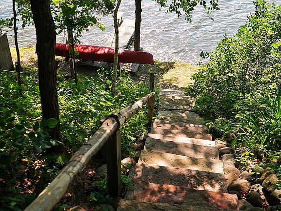 Looking for a lakefront vacation home with rental income? This charming cabin is just 75 minutes NE of the Twin Cities (Minneapolis/St.Paul) in Polk County, Wisconsin on Big Blake Lake (License #76675). The license transfers with the property - something not everyone has and is harder and harder to obtain in our area. We were one of the first rentals and have nearly a 10-year history of renting. This is being sold turn-key fully furnished. We are most commonly described as having an adirondack style designed home with modern kitchen and bath, and all the charms of rustic cabin life in the woods. Fully equip chef style kitchen (all new appliances January 2020), full bath with updated classic looking tub/shower combo, outside shower with a double shower head (May-Oct), year-round usability and comfort with central ac/heat, beautiful stone fireplace and two private bedrooms each with screened patio doors leading out to a wrap around deck that sits over the lake in the tree tops. June - Sept we supply a canoe, SUP (Stand Up Paddle Board) and floating diving dock. You can swim, bike, fish, hike, bring or rent your own kayak, paddleboat, boat (there's a ramp on the lake and we have a dock). In winter you can ice fish, cross country ski, downhill ski, snowshoe, snowmoile, visit local wineries, shops, casinos and so much more. There is something to do every season of the year indoors and outdoors here no matter the weather! We have many wonderful local restaurants within a 15-30 minute drive in charming towns like ours (Luck), Balsam Lake, Amery, Cumberland, St. Croix Falls, Frederic and Osceola. We are also a convenient 1.5 hour drive from the Minneapolis/St.Paul Int'l Airport. Rental of our cabin includes wireless fiberoptic internet, a stock of DVD's, games, cards, puzzles, children's toys, towels, linens, a coffee maker and grinder, extensive kitchen set-up with nearly everything you should need to cook and bake, an outdoor natural wood charcoal burning grill, trash bags, dish sponge, dish soap, dishwasher detergent and toilet paper. You will need to supply your own firewood (must be local - available locally in bundles), personal health and beauty products (including bug spray and sunscreen) and all food and beverages. Vacation sleeping arrangements accommodate a max. of six (6) people (3 Queen Beds = 2 private bedrooms and 1 pull-out sofa in Living Room). We usually limit adult groups to four (4) and allow the max. of six (6) when children are included in the count. One dog is welcome with advance permission and a nominal cleaning fee of $50. Two dogs have been known to be considered with further discussion. Each dog is $50. If you're interested in renting or reading the reviews to get to know the property and area better go to VRBO: https://www.vrbo.com/620941 Even more pictures and references available on Facebook: www.facebook.com/SunsetPines.