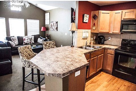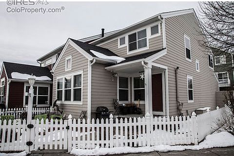 Fantastic end unit with fenced in yard and patio! Attached 2 car garage. Abundance of natural light throughout. Main level features open floor plan with hardwood flooring. Vaulted ceiling and fireplace in living room. Large master bedroom with walk-in closet and 5 piece master bath with soaking tub and separate shower. Second bedroom, full bath and loft also upstairs. Unfinished basement. Great neighborhood with trails and dog park. Close to Centerra shopping and dining. Easy I-25 commute!