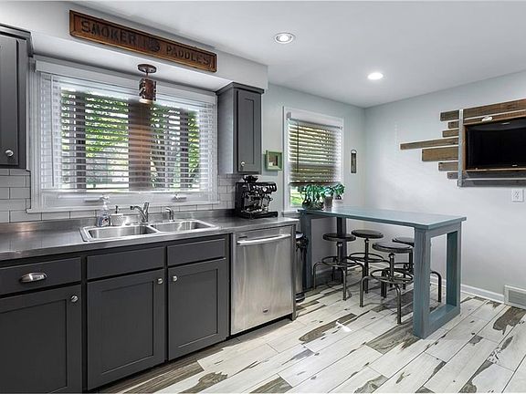 Trendy with an urban style twist, best describes this Charming Brick Ranch. You will fall in love the minute you enter the front door and notice the hand scraped walnut flooring. Custom kitchen offering gray cabinets with stainless counters, subway tile back splash and porcelain plank flooring! Two nice sized bedrooms that will accommodate king size beds. Newly renovated bath with limestone flooring and shower surround with a concrete vanity top. Enjoy evenings on your paver patio with privacy fence over looking your large 1.7 acre lot. Immaculate and move in ready home!!