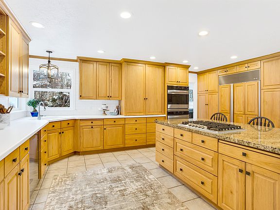 This home sits on a fenced-in lot in the back of a quiet cul-de-sac landscaped with mature trees, raised grow boxes, bridge, and 19-foot waterfall cascading down a native-rock wall. This move-in ready home has recently been updated, both inside and out. Come see the two-story vaulted great room with overlooking balcony. Picture yourself relaxing in the master bathroom with a jetted tub and shower/steam room. Two kitchens, large dining area, and patio makes this house perfect for hosting everything from an intimate family gathering to a wedding reception. This home is a must see. Come for a walk through today!