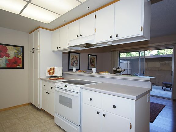 Updated Kitchen + Baths. Great Sunset Park Location. 1 car garage accessible directly through private patio. Community Pool + Tennis Courts.
