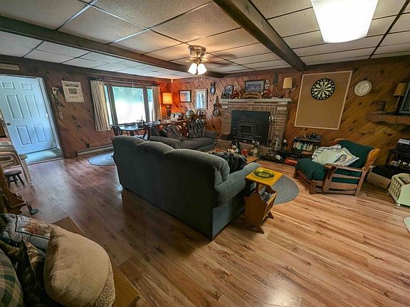Step into the home from the front deck and enter the cozy eat-in kitchen. Off the kitchen is a large family room featuring a brick fireplace with a wood stove insert and attractive tongue and groove pine. The home also has three bedrooms, a full bathroom, and a convenient laundry room. Enjoy the serenity from the front or back deck of the country home. Ultimate privacy is provided by more than 1,000 feet of road frontage and being the only home on the quiet gravel road. Current owner has enjoyed the home as a seasonal retreat for 20 years while updating the home along the way including a newer roof and floors. Along the road is a two-car garage with concrete floors and a newer metal roof. The home has an efficient propane heater, and high-speed internet is available. 14 acres.