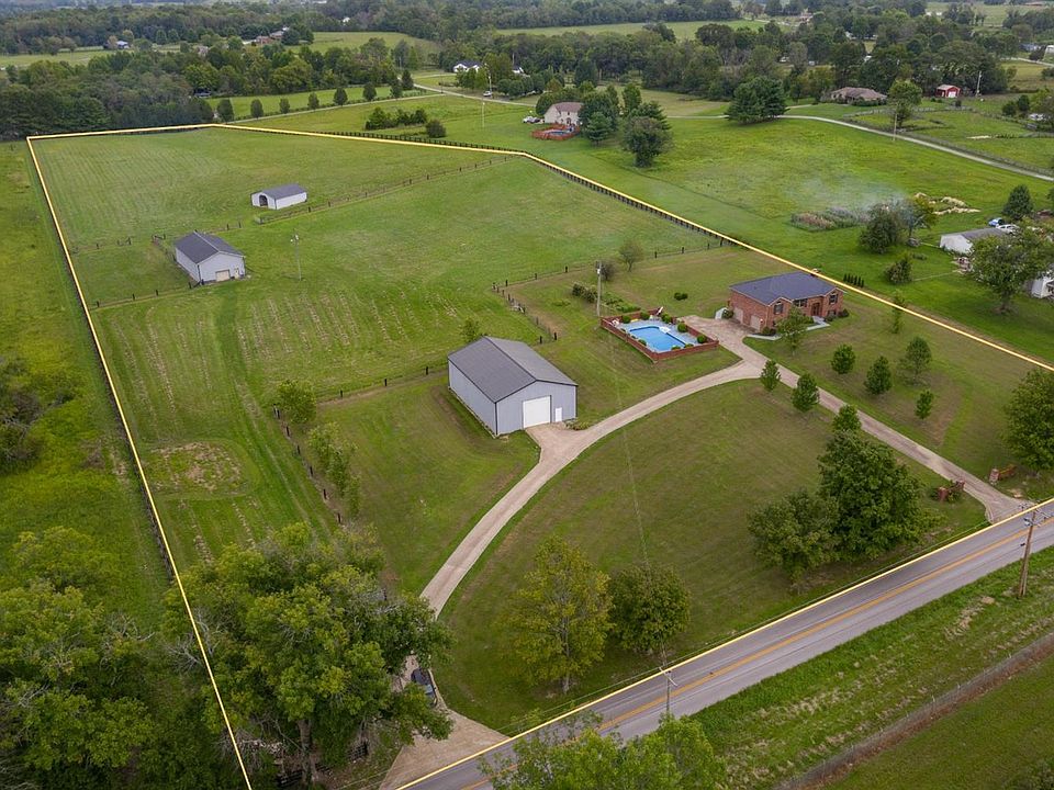 Come take a look at this 4BR/3BA home situated on 10.50 acres of beautiful level farmland, fully fenced with oak 4-plank. The home features a split bedroom concept with an open floor plan featuring a spacious kitchen with tons of cabinets and a great room leading to a new deck for entertaining. The master ensuite has a jetted tub, separate shower, double vanities and large walk-in closets. This property offers 2 metal garages (36 x 60) with a 16' garage door perfect for housing farm equipment or a motor home. The second garage is 28' x 60' perfect for a workshop. Have horses? Not a problem this property has a four stall barn complete with tack room and loft. All the exterior buildings are on separate electric meters. Oh! Be sure to take a look at the salt water in-ground pool with new a new liner recently installed. If you are looking for a home with lots of space to play, roam or work from home this is your forever home. Easy to show.