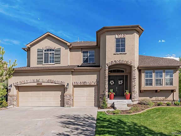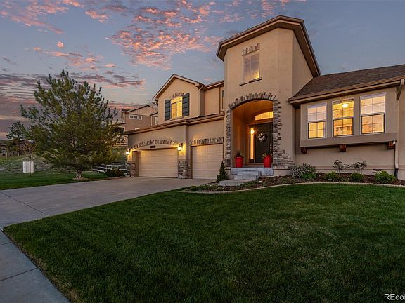 BUYER'S EARNEST MONEY CAME BACK AS NON SUFFICIENT FUNDS. Wow! Spectacular Tuscan-style Toll Brothers home with mountain views backing to open space in Pine Bluffs is a dream! Discover the exquisite craftsmanship & unparalleled beauty of this stunning 5-bedroom residence with a full, finished basement. Upon arrival, you’re greeted by a lush landscape & a spacious 3-car garage. The majestic interior will leave you in awe with its sheer beauty & spectacular detail, which includes soaring ceilings, rich wood flooring, and a custom palette. Spacious study, living & dining rooms with tray ceilings, plantation shutters, large family room with fireplace, plush carpet in the right places, and windows galore are worth saying. The gourmet kitchen showcases stacked cabinetry, granite countertops, high-end SS appliances, a walk-in pantry, an island, a table/desk, and a breakfast nook with wonderful views. The oversized, main-floor, owner’s suite has a tray ceiling, a walk-in closet, and a beautiful ensuite featuring a dual vanity, a soaking tub, & a 2nd walk-in closet. Two of the three bedrooms upstairs share a Jack & Jill bathroom with a huge dual vanity, while one bedroom has its own attached full bathroom. The Massive basement is an entertainer’s dream, offering a wet bar, tons of space for a variety of activities, plus a sizable bedroom & a bathroom along with a semi finished crawl space for extra, usable storage. Be captivated by the outstanding views the backyard allows from the flagstone patio. Excellent location close to great schools and with easy access to major roads. This masterpiece is a must see, words don’t do it justice!