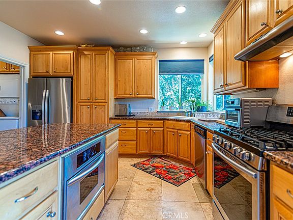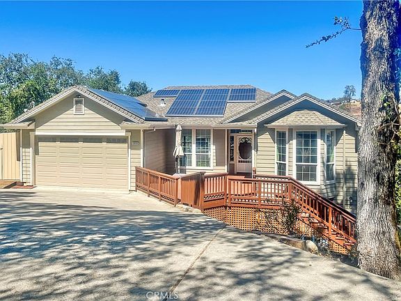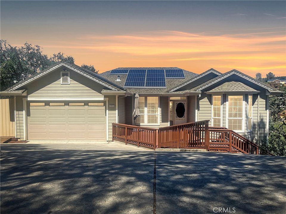 Back on the market, solar paid off. Welcome to this spacious home featuring 3 Beds & 3 Baths located on a quiet tree-lined street in Hidden Valley Lake. The residence offers panoramic views of rolling hills and the adjacent golf course with over 3,000 square feet of living space on just under a 1/2 acre lot. There is plenty of parking in the attached two-car garage and extended driveway offering 6 extra parking spots. Main floor features a master bedroom with mini split individual zoning and luxurious en suite complete with jacuzzi tub and standalone shower. The open-concept layout includes a living room with high ceilings, cozy pellet stove, a chef's kitchen, and airy dining room. A second bathroom adds further accessibility and convenience. A front room with charming bay window can serve as an ideal space for a home office, den, or gym. Downstairs you’ll find a welcoming family room with wet bar and place for a second dining room - ideal for entertaining and unwinding. The lower level's two bedrooms and bathroom are perfect for guests or family members. An additional area with private stairway entrance and mini-split zoning can function as a studio or guest suite. Step outside to enjoy the front porch deck for leisurely mornings and evening sunsets. The expansive rear decks offer 3 levels of outdoor space providing ample room for relaxation including a hot tub to soak up the views. The beautifully landscaped backyard has plenty of space for outdoor activities, a garden with fruit trees and gazebo area for dining al fresco or recreation. With multiple storage spaces and modern amenities such as owned solar, home backup battery and Level 2 EV charging, this energy efficient home seamlessly blends versatility and comfort.