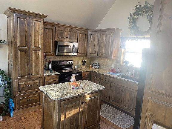 This beautiful home sits on 5 acres and has lot of amenities. Brand new outdoor kitchen built in 2022, 13x24 swimming pool, covered wood shed that holds 3 ricks of wood, 8x20 chicken coop, 30x40 shop, 3 outside decks 1) hot tub deck, 2) covered deck and a pool deck that has composite decking. 4 bed rooms and 3 bath. Granite counters in the kitchen and bathrooms, knotty alder cabinets throughout, knotty alder custom doors, real wood floor, tile and vinyl plank floors in all but one room. Living is open to the dining and kitchen. There is also a wood stove that will heat the entire house. Home has a well and aerobic septic (pumped and serviced in 2022). All electric.