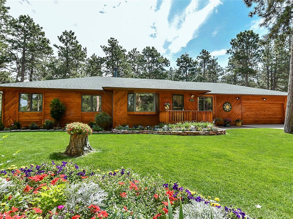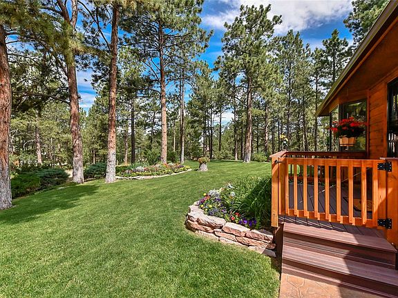 Charming Woodmoor Rancher on a gorgeous treed .6 acre lot w/stunning raised stacked stone flower beds & flagstone walkways throughout! Stamped stone walkway to double door airlock entry. Formal dining room w/recessed picture window & vaulted front formal living room w/bay window. HUGE walkout family room w/wood burning fireplace & built ins, opens to kitchen w/hand scraped tongue 'n groove wood flooring, recessed lighting, new dishwasher, pantry, long counter bar, utility desk, bread drawer, tile pot rest, & pullouts. Dutch door leads to Master Suite w/window seat overlooking the glorious backyard, crown molding, attached full bath w/double sinks, cultured marble counters, soaking tub, skylight, & walk-in closet, AND 2nd main level bedroom! There is a 3rd main level bedroom &d full bath, as well as walk-out laundry w/wood floors, built-ins, closet & utility sink. Lower level has enormous rec room w/built-ins and FOUR storage closets, bedroom and office w/built-ins that could easily be