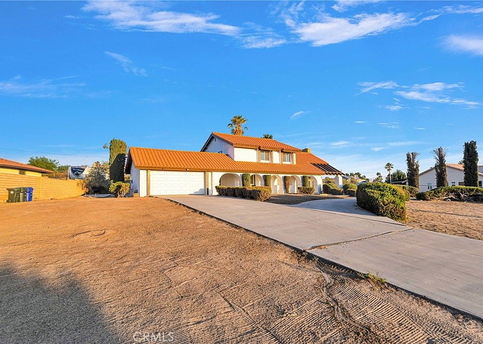 * * Mediterranean Spanish Style * * Charming home in the desirable area of Apple Valley (SKYLINE/SUNSET HILLS) **Turn Key** This updated home boasts over 2,200 SQFT, 4 bedrooms 3 bathrooms. Upon entry, you are greeted with an abundance of space due to the open concept & high ceilings. New Windows, Upgraded Laminate , Quartz Countertops, Custom Backsplash, Beautiful Stained Cabinets, Tile showers. All Interior & Exterior Recently Painted.***High Ceiling with Custom Wood Paneling In Family Room with a connected WetBar *** Lot SIZE 30,800 Bring Your RV *** Stunning View ***