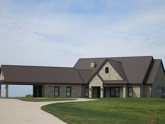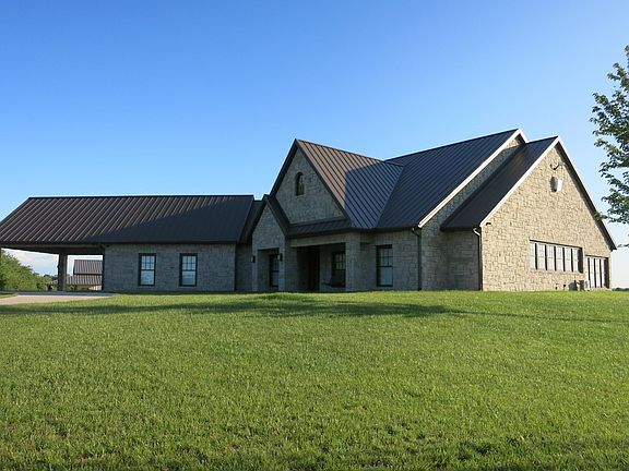 Price Reduced! This is a once in a lifetime opportunity for you to have both a beautiful home and excellent hunting! This 370 acre farm consists of 67.8 ac. of CRP paying $151.58 per ac. for an annual income of $10,277 until 2029 and $17,250 income from row crop leased through 2021. Has 160 ac. m/l of timber and draws with CRP and row crop throughout the property. It has several green food plots and 5 ponds, three heavily stocked and two mainly water sources for wildlife. Eight ladder and one hang on stand are strategically placed on food plots, creek, and secondary trails. For the gun hunter, there are six 15' tower sportsman condo blinds that offer excellent views of shooting lanes through the property. It has a windmill overlooking the orchard of apple trees and blackberry/raspberry plants with irrigation. The home is located 1,600 feet off of blacktop with built up private gravel driveway along with all utilities ran back to the home. Entering the property you will drive under a steel arch with a laser alarm messaged to the house, and you will now be on the 6" thick by 12' wide concrete apron. The 950 ft. apron also connects the home to the building for easy access. The home has an exterior that is totally maintenance free with the exception of the heavily finished custom knotty alder entry door and fiberglass walk in garage door. The outer walls have been wrapped with 2 layers Tyvek, seams taped, and a heavy plastic barrier inside the 6' Native Kansas Limestone Rock exterior. The standing seam metal roof has a synthetic cloth and is made of snow/ice melt material. The front porch and back patio has Bluestone flooring. The back patio has a two sided waterfall and fire pit. The home has a 6' concrete slab with 2' foam under and on sides with pex (glycol) radiant heat in the house and garage. The heated floors except for the garage are covered with authentic reclaimed hardwood. The home has an open floor plan. The kitchen has the highest end of Subzero/Wolf brand appliances, soap stone kitchen countertops, all custom cabinetry, maple butcher block island countertop, farmhouse sinks, and island exhaust. It has a large great room with dining and living room area, 2-3 bedrooms, large built-in gun safe, 2 ½ baths, and a nice sun porch with beautiful views overlooking the property. The home also has an oversized garage and carport. This home comes with 33 casement (non-stationary windows) that are highest grade "Marvin" clad windows with new design retractable screens, also has three "Marvin" double Atrium and one entry door. Has high end heating and cooling system, with a P68 pellet stove if extra heat is needed. Also has a high definition camera/security system both in the home and the building. The 36x65 building is almost as nice as the house with concrete floor, a kitchen area, bathroom, and its own heating and cooling system. It also has an outdoor sink for cleaning your garden vegetables, fish, etc. This property should offer phenomenal hunting and fishing along with $27,527 of income. If you are a qualified buyer please call for more information on the property. Owner will consider selling a smaller acreage with the home.