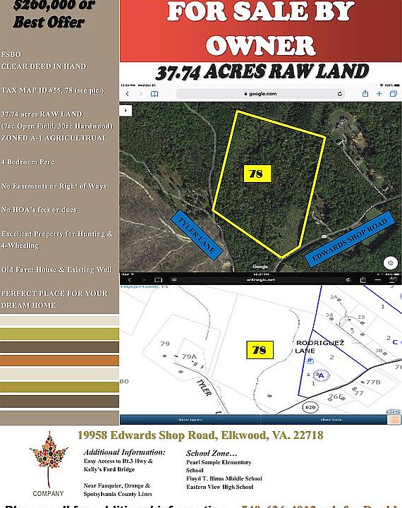 FSBO 37 acres of raw land. Zoned A1 agricultural. 4 bedroom perc. Fronts main paved roadway. No easements or right of ways. No homeowners association. Perfect spot for hunting, 4 wheeling. Perfect for your dream home.