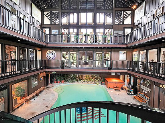 This gracious, custom home on over 2 picturesque acres is uniquely designed for poolside entertaining 365 days a year! The custom pool surrounded by blue flagstone is the focal point of the home which offers 3 full floors of living space. Poolside features a custom bar, steam room, hot tub and family room area that opens to a private outside patio and more...The kitchen has been tastefully updated, large master suite w fireplace and 3 additional bedrooms.
