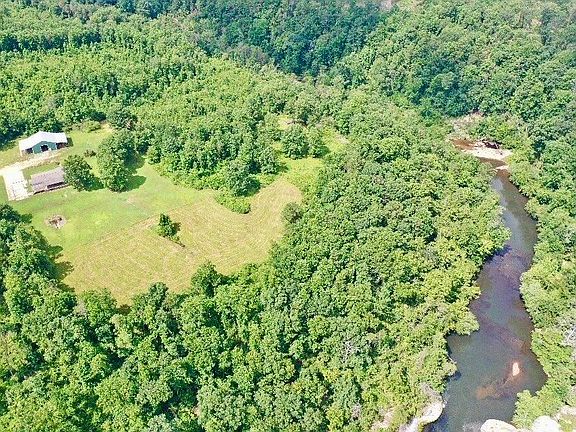 Bear Creek Hunting Camp offers 63+/- acres at the end of a quiet county road in the Bear Creek community of Marion County, Alabama. The property adjoins TVA land for more than 3/4 mile along Bear Creek, providing opportunities for fishing, canoeing, and kayaking in warm months and hunting in the fall and winter. About 30 acres were recently harvested, creating excellent deer bedding and wildlife habitat. A trail leads from the home to Factory Falls, a well-known scenic spot on Bear Creek. Improvements include a 2018 Southern Energy double-wide with 2,161 sq ft, three bedrooms, two and a half baths, and a large back porch. A 40x40 metal shop with two lean-tos provides storage for equipment, ATVs, or projects. Portions of the property could also be converted to pasture or larger food plots. Convenient mix of recreation, comfort, and usable land.
