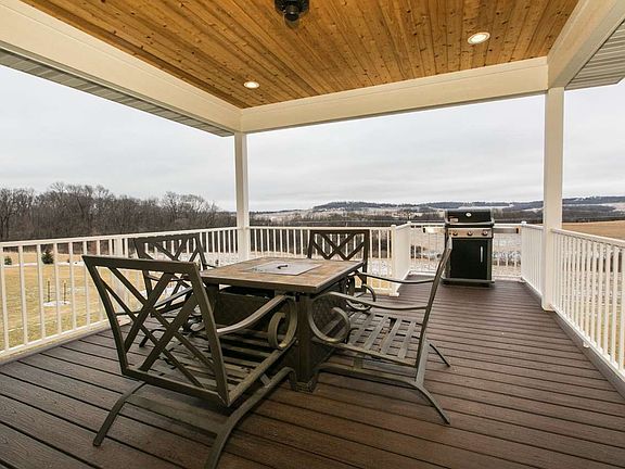 Stunning 5 bedroom, 4 bath walk out ranch. Beautiful open floor plan featuring great room with fireplace and built ins. Painted cabinets and trim through out, hickory wood floors, granite counters, 5 burner gas stove with dual ovens, pantry, and center island. Large dining area leading to 13x15 covered deck, great for entertaining. Great country views! Home features 4 bedrooms on main floor. Large master suite with trey ceilings, 10x7 walk-in closest, and dual head tiled shower. Lower level finished including wet bar, 5th bedroom, and full bath. Lower storage garage. Air to air exchanger, radon system, & an average $61.00 gas bill make this a home to enjoy for many years.
