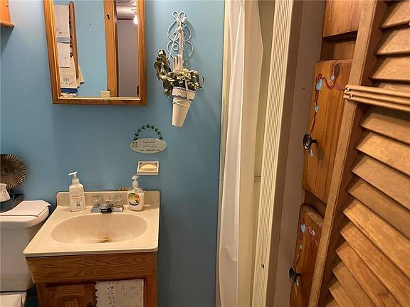 Country living but close to amenities for this 2 bedroom 1.5 bath home situated on 12.3 acres. Nice mud room entry for coats and shoes before entering the home. Laundry conveniently located on the first floor. Eat in kitchen opened to the spacious living room which could be split for either a dining room or space for an office area. Handicapped accessible with ramp that puts you right into the living room. Upstairs has 2 huge bedrooms and full bath. 1 of the bedrooms could be split to make a 3rd bedroom if needed. Large walk in closet room or great storage room. Lots of flat land to plant a garden or have some animals. 3 sheds come with the property too. Keep the land that falls on the other side of Haskell Creek or sell it off as a building lot. House is AS IS.
