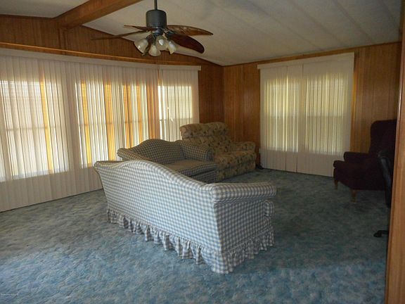 Spacious 2/2 on a large fenced in pie shaped lot 50x100x137x170 that backs up to a drainage canal. There are two sheds. One shed has a U shaped work bench and is right off the 18x10 screened porch. Carport has long driveway. Plenty of parking area. Very private. The separate laundry room has extra storage cabinets. Large Master Bedroom has large closet. Master bath has garden tub plus a shower .Second bedroom has 2 closets. The Living Room and Dining Room are OPEN, BRIGHT AND CHEERY. Plenty of storage and room to move around. A real beauty. 55+ Community.Sprinkler system and Alarm system in As Is condition. This property does not belong to the HOA, but you have the option to join ,