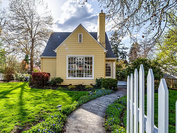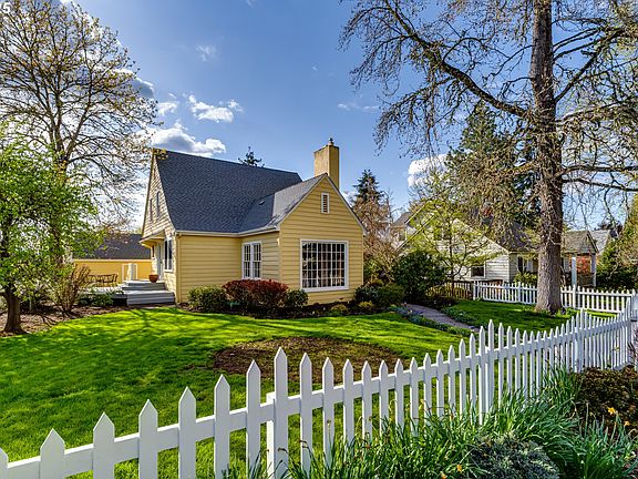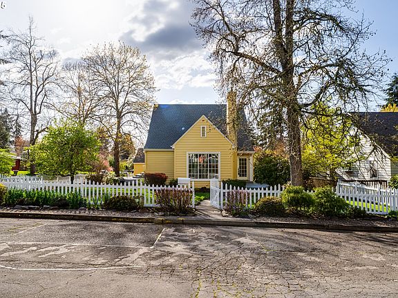 Charming vintage home in the highly desired Friendly neighborhood! This sunny yellow gem features 3 spacious bedrooms & 2 full bathrooms plus a partially finished basement that offers flexibility for a 4th bedroom, office, or creative space. Light-filled living room with large picture windows, wood floors, and cozy fireplace. Tasteful updates throughout while preserving original character—arched doorways, built-ins, and stylish finishes. Bright kitchen with stainless steel appliances and French doors leading to a lovely back deck and fenced yard—perfect for entertaining. Detached 2-car garage and mature landscaping. Minutes from Friendly Park, neighborhood cafes, and schools. A rare opportunity in one of Eugene’s most sought-after locations!