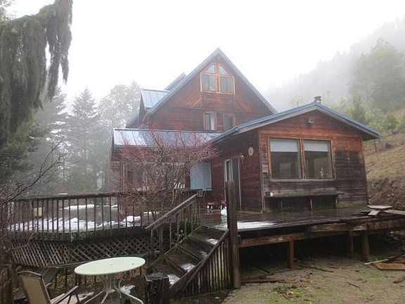 Here's a great home on over 50 acres of trees with 2 creeks running through it, one year round. Home features 3 bedrooms, 2.5 baths, approx. 2377 sf., built in 1989, spring for domestic water, oak cabinets, cozy woodstove, lots of natural wood, 2- heat pumps, newer master bedroom, master bath has jetted tub and tile, metal roof, family room, office, bonus rooms, redwood siding, large deck, and great mountain views. All information is deemed reliable but not verified; anyone considering purchasing this property should perform their own investigation into the uses and condition of the property.