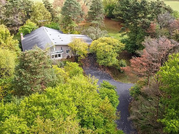What a setting, located on 20 acres. A winding circular driveway leads you back to this unique custom built home. The home is surrounded by trees and the outer perimeter is open land. An Outbuilding for lots of storage, boats, extra vehicles or a hobby shop. Attached oversize 2 car garage. First floor features a Great room in the center of the home, circular stairs leads you up to the library with sliders to the deck. Bedrooms are very spacious. Finished walk out lower level with full bath, family room with fireplace, office, recreation room and lots of storage. An actual bank vault is built in to the lower level. Come in a make this home your own retreat. Lots of ability to expand, remodel as you wish.