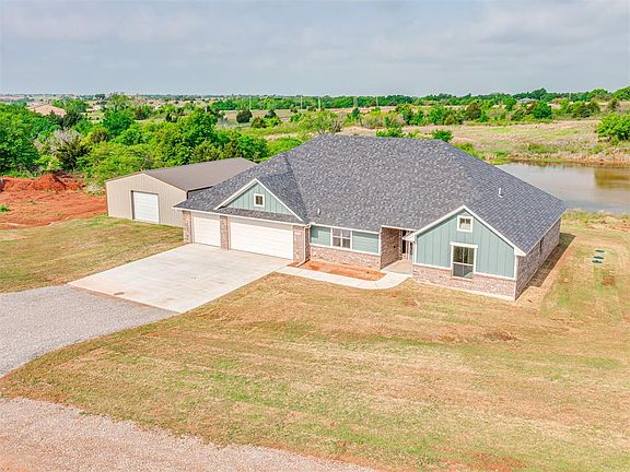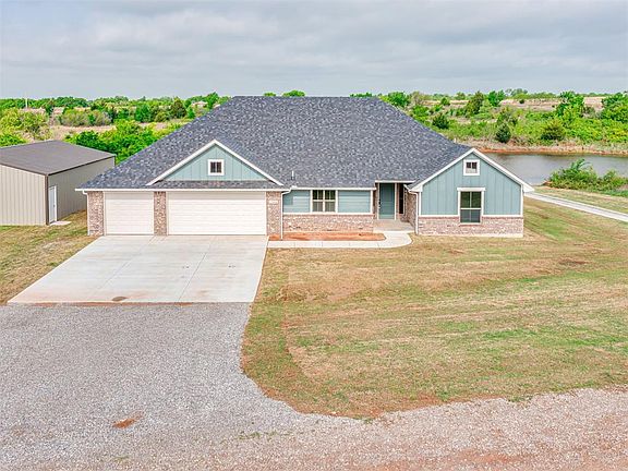 This one HAS IT ALL! WATERFRONT, SHOP, 2ND PRIMARY SUITE! PLUS $5000 builder incentive available! Covered porch welcomes you into this open family, dining, and kitchen. Wood look tile floors in high traffic areas for easy living! Kitchen with stainless appliances, walk in pantry, island with snack-bar and eat-in area. XL utility room with flex area for extra storage, crafting or more! Large owners suite with bay window, walk in closet, dual sinks, separate tub and shower. Plan features second bedroom suite with private bathroom. Two additional nice sized bedrooms. Covered back patio overlooks LARGE POND! All this PLUS 30*40*10 shop with concrete floor, roll up door and walk door. SO MUCH MORE!