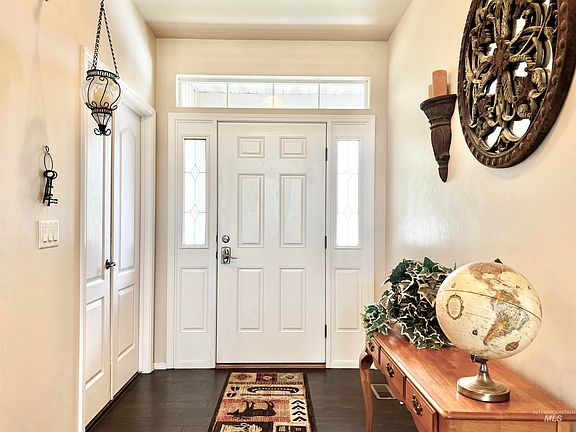 This beautiful northwest Twin Falls home is tucked away on a quiet loop just a few minutes' walk from the Snake River Canyon. Extra-large windows fill the spacious great room with natural light and a gas fireplace keeps things cozy in colder months. Dark-toned commercial grade laminate plank flooring in the common areas adds a rich warmth throughout the home. The three-car garage includes a tandem bay that could be used as a shop or to store your toys. Established landscaping and an east facing back patio create the perfect setting for entertaining and relaxing outdoors. An extra bonus is the walking path behind the property that takes you straight to the canyon rim!