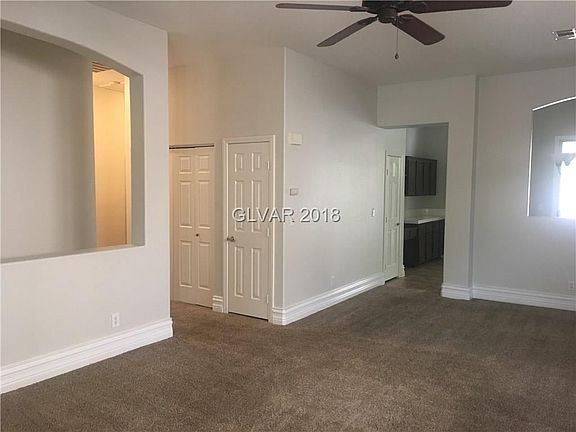 Hard to find gem in Green Valley Ranch. 1 story, 3 bedrooms, 2 car attached garage. Gas fireplace in open family room with area for formal dinning room. Kitchen has tile counter tops and tile flooring. Huge master suite with ceiling fan. Private back yard with covered patio. Extra storage in garage. Backs up to community park. Maintenance free desert landscaping.