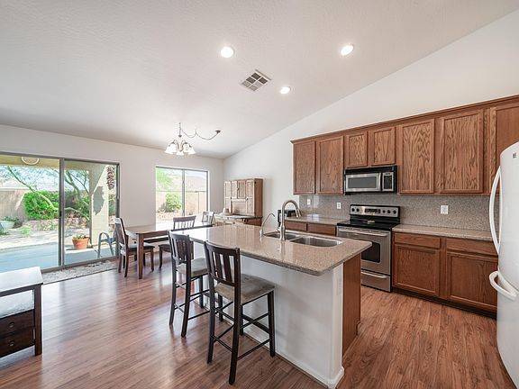 What an outstanding opportunity! Bring your pickiest buyers! This home has been well cared for and loved! All new interior paint, quiet and private back yard with lots of plants and trees plus laminate floors for easy cleaning and looks great! Soft water system as well as RO. Granite counters in the kitchen with walk in pantry plus a generous island. Vaulted ceilings everywhere plus a very open floorplan plus a bonus room that could be a den/office, another bedroom or use as it is now as a bonus room! Very close to the newer down town Queen Creek for shopping and dining! Plus Walmart is just down the street!