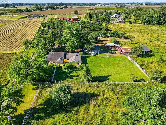 Beautiful level 20 acres/4 separate tax lots, 5 acres each/Remodel the 1901 Farmhouse (3 bdrm/2 bath, 2460 sq. ft. huge vaulted lvrm w/wall of windows) or build your dream home/located close in Hubbard surrounded by farm ground and million dollar homes Buyer to do due diligence regarding buildability of the other lots/Barn/outbuilding/creek Property has unlimited potential with the great location, back from the main road, excellent North Marion Schools/selling as is-seller to do no repairs