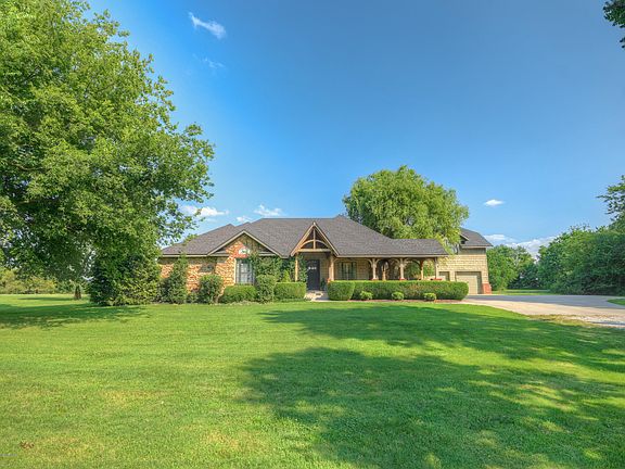 Gorgeous French Country Estate (home may be purchased with additional acreage) Porcelain tile, hardwood, curved door ways, solid beamed ceilings are just a few architecture details and outside exterior has sandstone sculptures & brick and fieldstone from the land. Fall in love with gourmet kitchen with beautiful cabinetry and wood working. Two master suites, all bathrooms have its own Jacuzzi tub, plantation shutters, large walk-in pantry, Rumford fireplace, instant hot water, two double french doors leading to covered patio