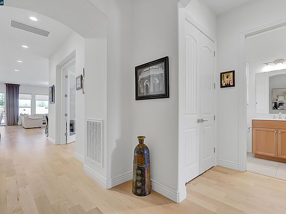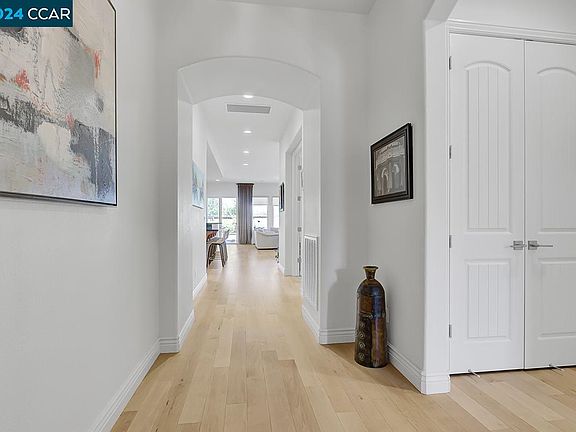 Discover luxury living in Trilogy at the Vineyards in this stunning Costa Dorado floor plan. As you step inside, you'll immediately be captivated by the simplicity and elegance of the great room concept. Enjoy the open kitchen complete with a walk-in pantry, stainless steel appliances including refrigerator, granite counters and bar/island seating area for casual dining, all tied together by beautiful engineered wood floors. The private office/den offers a tranquil space to focus and be productive while working from home. The spacious laundry/craft room adds convenience and organization to your daily routine with washer & dryer included. The covered patio/California room with outdoor waterfall feature is perfect for alfresco dining and relaxation. The garage boasts epoxy flooring and high-quality storage cabinetry. A tankless water heater and pre-paid solar system offer energy efficiency and savings. As a resident, you'll enjoy the East Bay's premier 55+ resort-style active adult community with world-class amenities at your fingertips. Don't miss your chance to dive into the sparkling swimming pools, unwind in the spa, stay active on the tennis courts, achieve your goals in the gym and explore the exceptional restaurant and social opportunities that await you!