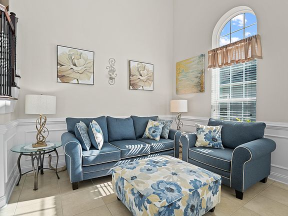 OPEN HOUSE SATURDAY, 11/21 11am - 1 pm. Stunning Executive home loaded w/ high level upgrades. Look at Matterport & Video Tours under photos! Built in 2018! Like NEW! The Barcelona has a dramatic two story foyer, w/ Living & Dining room. Natural light abounds! Gourmet kitchen w/ large cooking island, wine chiller, Double ovens, backsplash. Family room has electric fireplace & Built in shelving & cabinets. Half bath for guests off kitchen. Guest bedroom w/ full bath & Master bedroom on First floor. Master bath w/grand roman bathtub, walk-thru shower. Second floor has 3 bedrooms, 2 baths and large loft for an office or family TV/play area. The home backs up to preserve. Enjoy the outdoors, & nature from the screened lanai. Fully fenced. Enjoy the Eagle Harbor amenities!