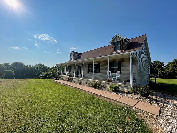 A beautiful horse farm including a stocked pond with 12.28 acres and a Cape Cod with 2,872 sq. ft. (owners sq. ft.), 3 bedrooms, 3 baths with master suite and laundry on the first floor. This quality built one-owner home is highlighted with 9' ceilings, 6 panel solid wood doors, stunning hardwood & newly installed engineered hardwood floors, as well as a gas fireplace. A full walk out, partially finished basement is plumbed for a 4th bathroom and includes a cleaning station/dog kennel. The estate type grounds include a large concrete patio with 27' above ground pool, multiple out buildings, 36' x 36' horse barn with electric and water with three 12' x 12' horse stalls and tack room. A fenced in riding area completes the list of a horse lover's dream. There are several additional buildings for smaller animals. Schedule your appointment soon as this gorgeous property will not last long. Additional parcel #:140103148000. Tax total is for both parcels, home is a unbuild by D&W homes.