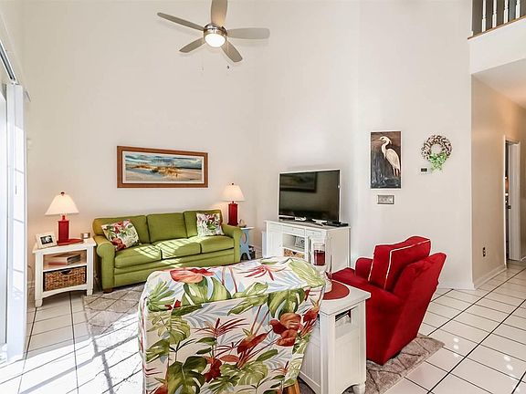 Completely tiled, lovely 2bd 2.5 bath home is filled with light and features an open floor plan with soaring vaulted ceilings, 2 master bedrooms with walk-in closets and en suite baths (one up and one downstairs), and a cozy loft. All the main living areas have been freshly painted and the kitchen/living room/dining area all flow together creating a wonderful space. Half bathroom downstairs includes laundry closet with w/d and large storage closet. GILA reflective film on all downstairs windows increases privacy and decreases electric bills! The kitchen features stainless steel appliances, all less than 5 years old. Step outside to the oversized stamped concrete patio overlooking the pond and enjoy the fountain while you soak up the sun, or relax under the new Sunset Awning. HVAC system is only 6 years old and the duct work has recently been cleaned/sanitized. Special features include plantation shutters, one car garage with pull down stairs to fully floored attic, new light fixtures, new ceiling fans, granite counter tops in bathrooms, security system. HOA includes building insurance; water/sewer; trash; basic cable; pest control; termite protection; exterior maintenance; community pool and clubhouse; pool and lawn maintenance. Square footage is approximate and not guaranteed. Buyer responsible for verification of all information.
