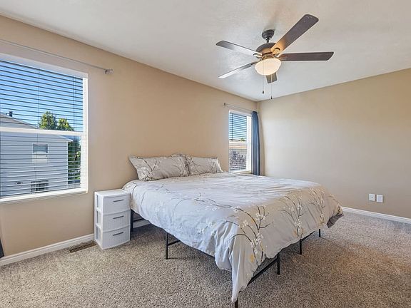 We are located in a cul-de-sac with a nice grass field and a private running trail across the street. Firework shows are directly across the street each year which gives us the best view and area for celebrating. Finished 2 car garage that is insulated and has an in-wall heater/ac unit. New central air unit a year ago. New flooring and carpet in the entire house. New White cabinets. New large concrete patio 17' x 17.5' Walking distance to many stores and restaurants. Close to schools