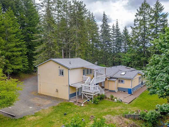 Dual living in the country! Spacious triple wide 3 bed/2 bath home, providing ample room for comfortable living. The 1906 sf home offers a cozy & inviting atmosphere. The property sits on 5 acres of beautifully wooded land, providing a serene & relaxing environment. In addition to the primary residence, there is an ADU above the garage. This 576 sf space is perfect for guests or rental & features 1 bed/1 bath & a full kitchen. RV parking, large garden area, fruit trees & spectacular territorial views!