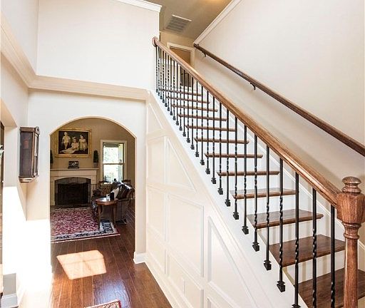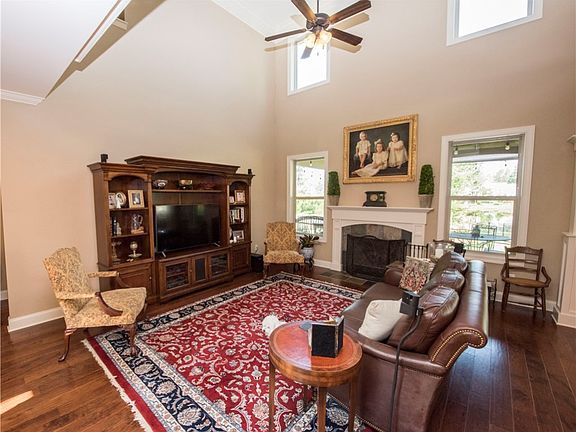 Spectacular, immaculate home on large lake front lot. Grand two-story foyer, formal dining room with coffered ceiling and judges panels wainscoting detail. The two-story great room has wood-burning fireplace and beautiful hammered 5-inch hardwoods and is open-concept to the Kitchen and Sun-Room. The eat-in Kitchen is spacious boasting beautiful granite,ceramic tiled Back-splash, great Island with a raised Snack Ledge and a large Pantry. Just off kitchen is the Sun-Room with access to the open-rafter covered patio and Fantastic Lake views. The Retreat-Like Master Suite will not disappoint! An entire wall of Large windows offer spectacular Lake Views! The En-Suite Bathroom boasts exquisite finishes throughout. Upstairs is a Massive Bonus Room great for family game night or watching a movie. There's also a BIG custom built-in for storing movies, games, photos and more! Bedrooms 2 & 3 share a Jack-n-Jill Bath. Outside the Back-Yard is Phenomenal!!! Large, flat with nice trees and the LAKE!